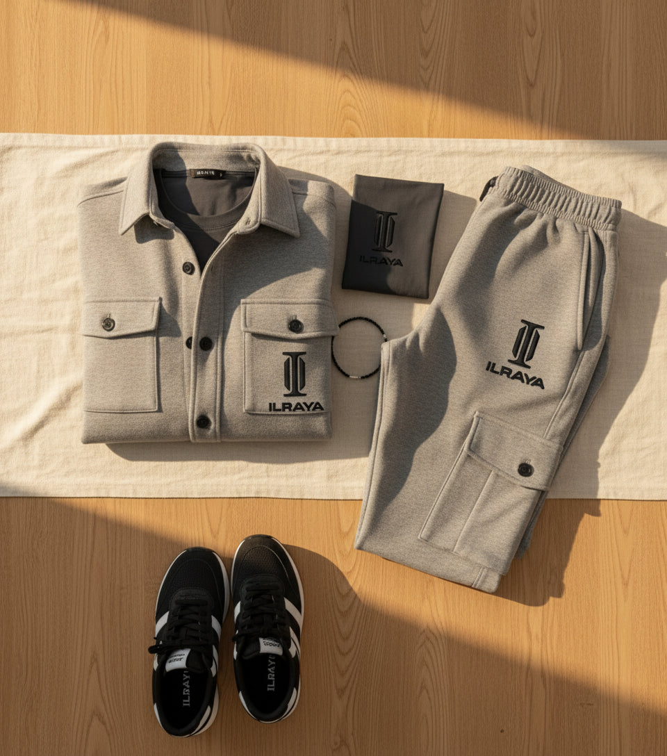 مجموعة ILRAYA الرجالية: بدلات رياضية، هودي، وسراويل رياضية. تصميم بسيط، 85% قطن...